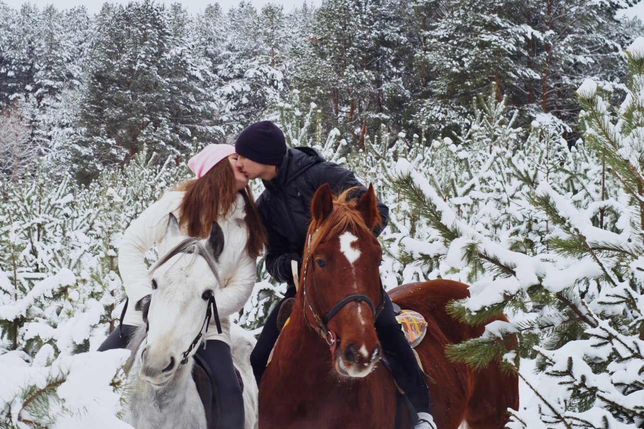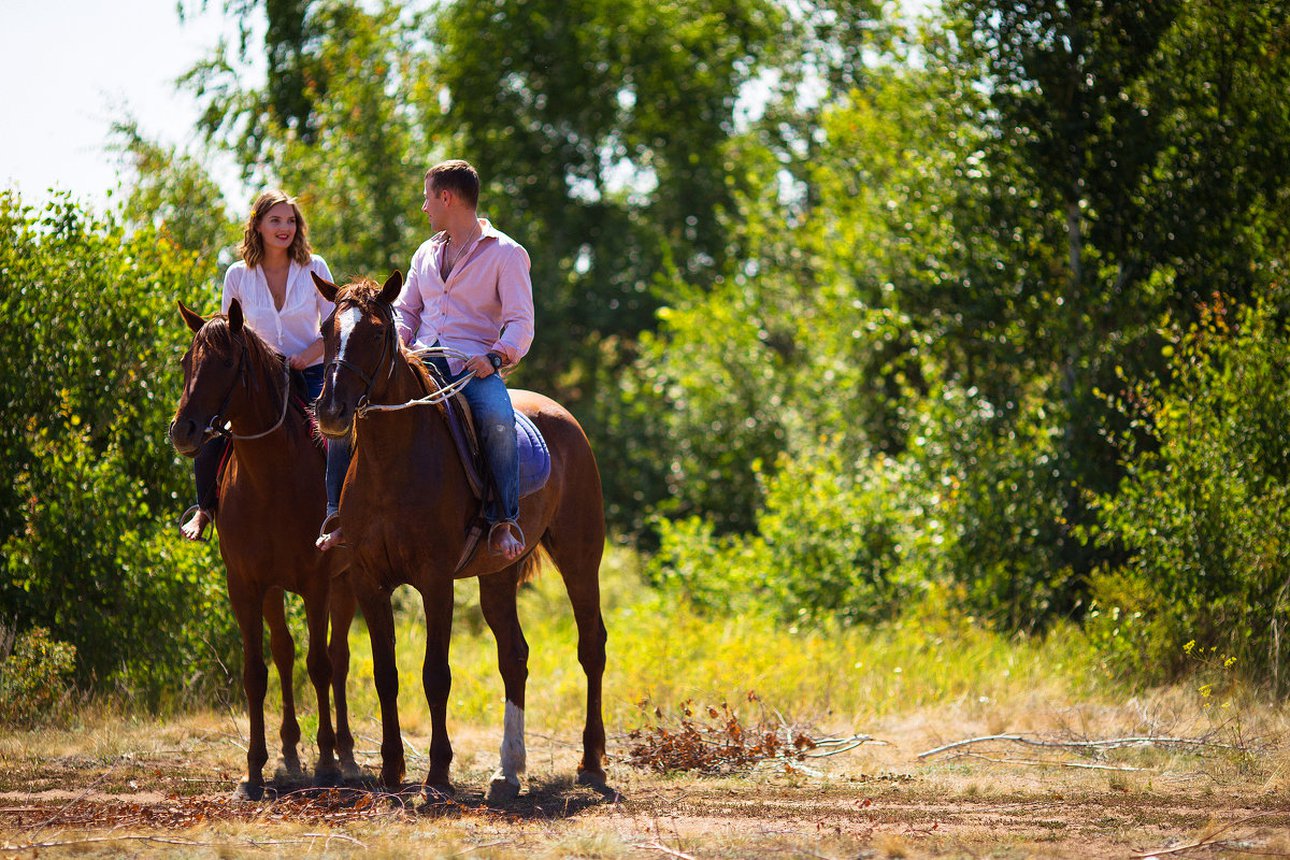 Конная прогулка для двоих на 1 час, Две лошади для романтической прогулки